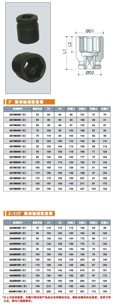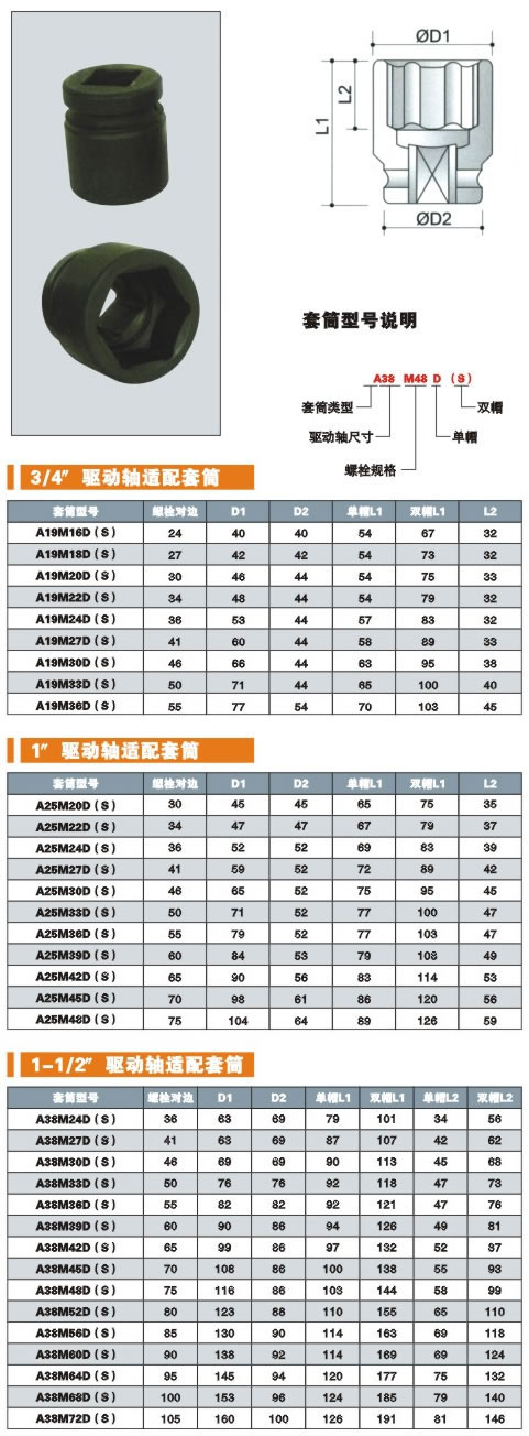 驅(qū)動(dòng)式液壓扳手套筒型號說明